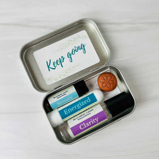 We are a small, woman owned and operated business located in the middle of the Green Mountains of Central Vermont. Our mission is to make self-care and wellness easy for everyone by offering natural, therapeutic aromatherapy and crystal kits to help you manage the stress of every day life.