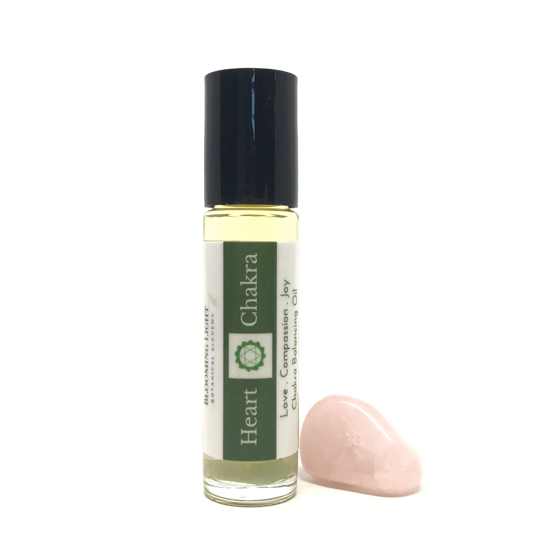 - Heart: Essential oils: Grapefruit, Geranium, Rose, Crystal Chips: Green Aventurine, Rose Quartz