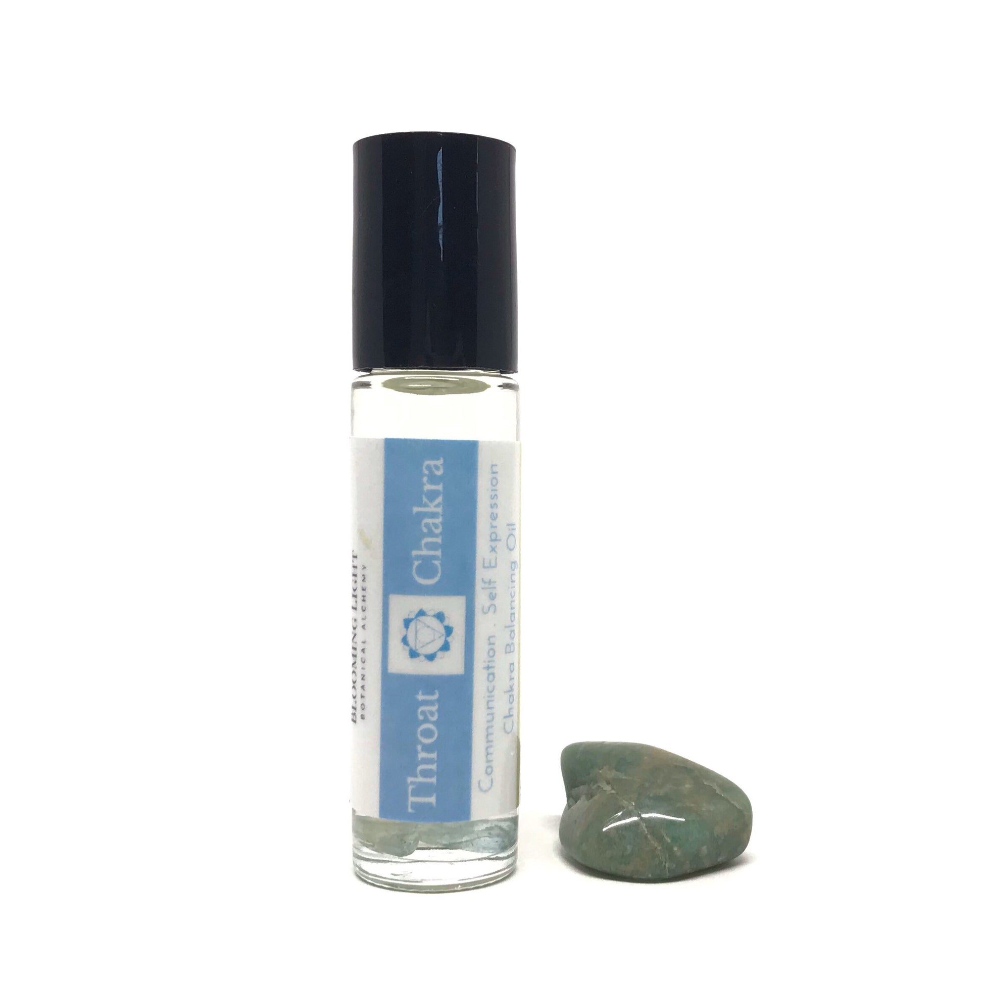 - Throat: Essential oils: Bergamot, Spearmint, Lime, Crystal Chips: Sodalite