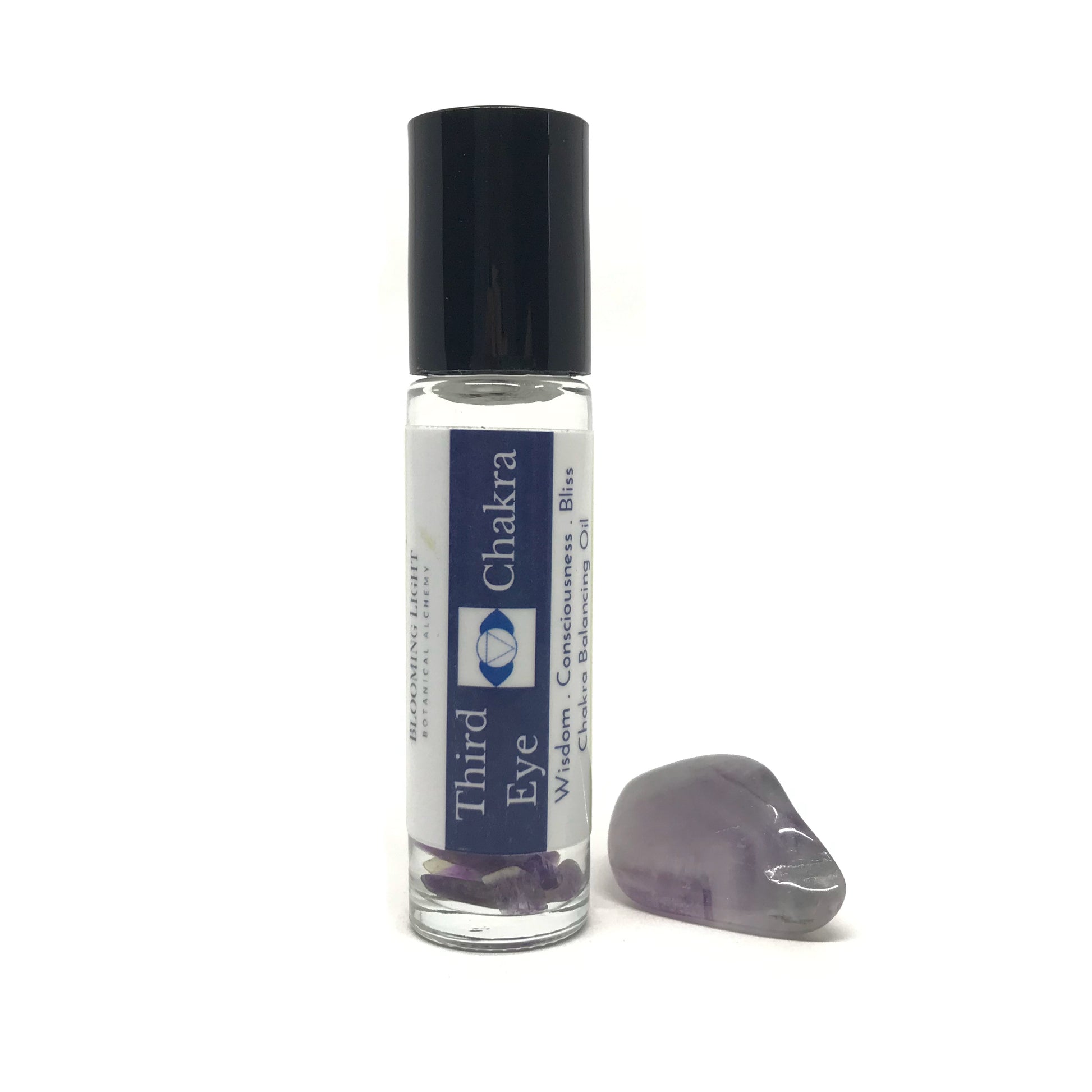- Third Eye: Essential oils: Rosemary, Clary Sage, Lavender, Crystal Chips: Amethyst