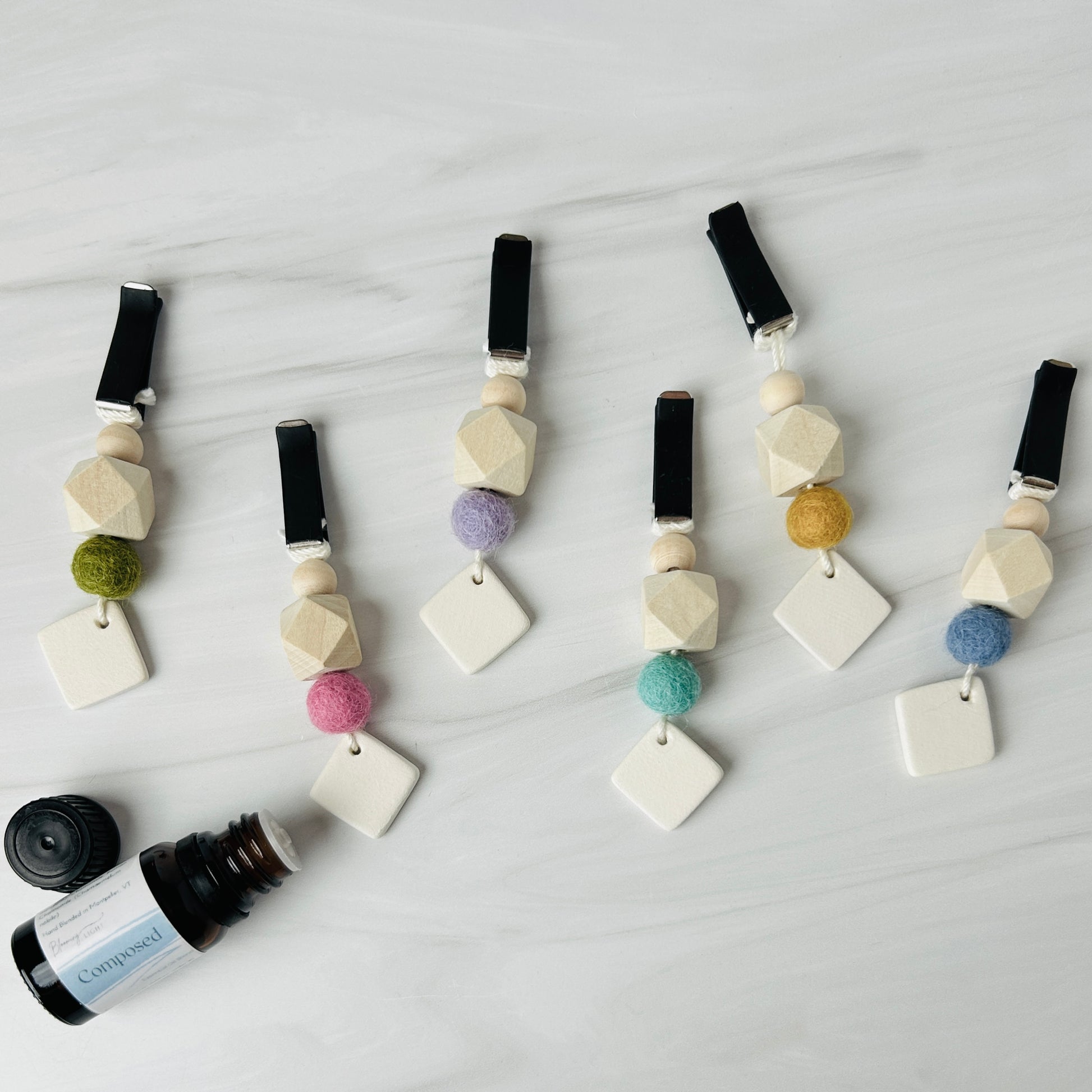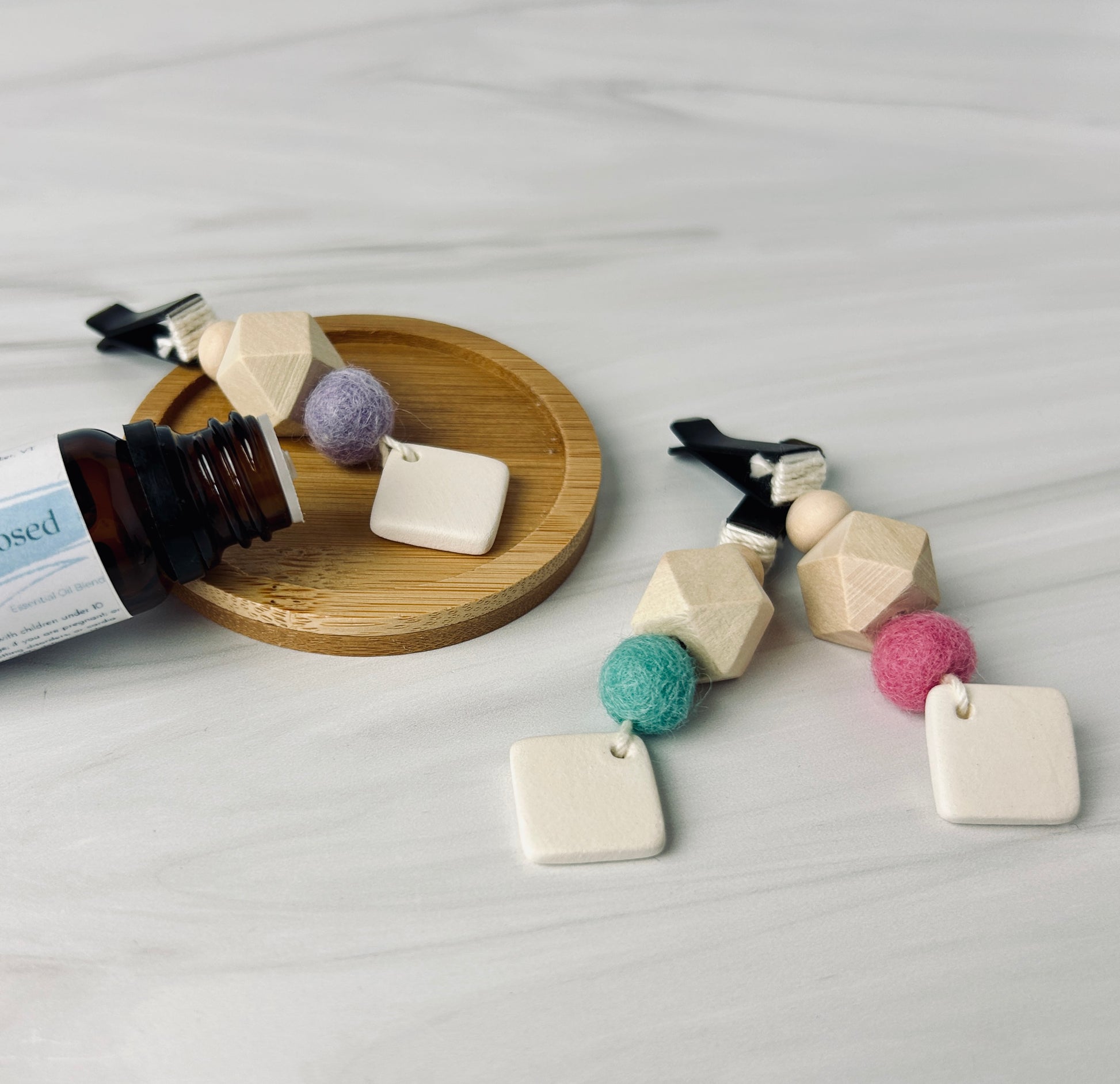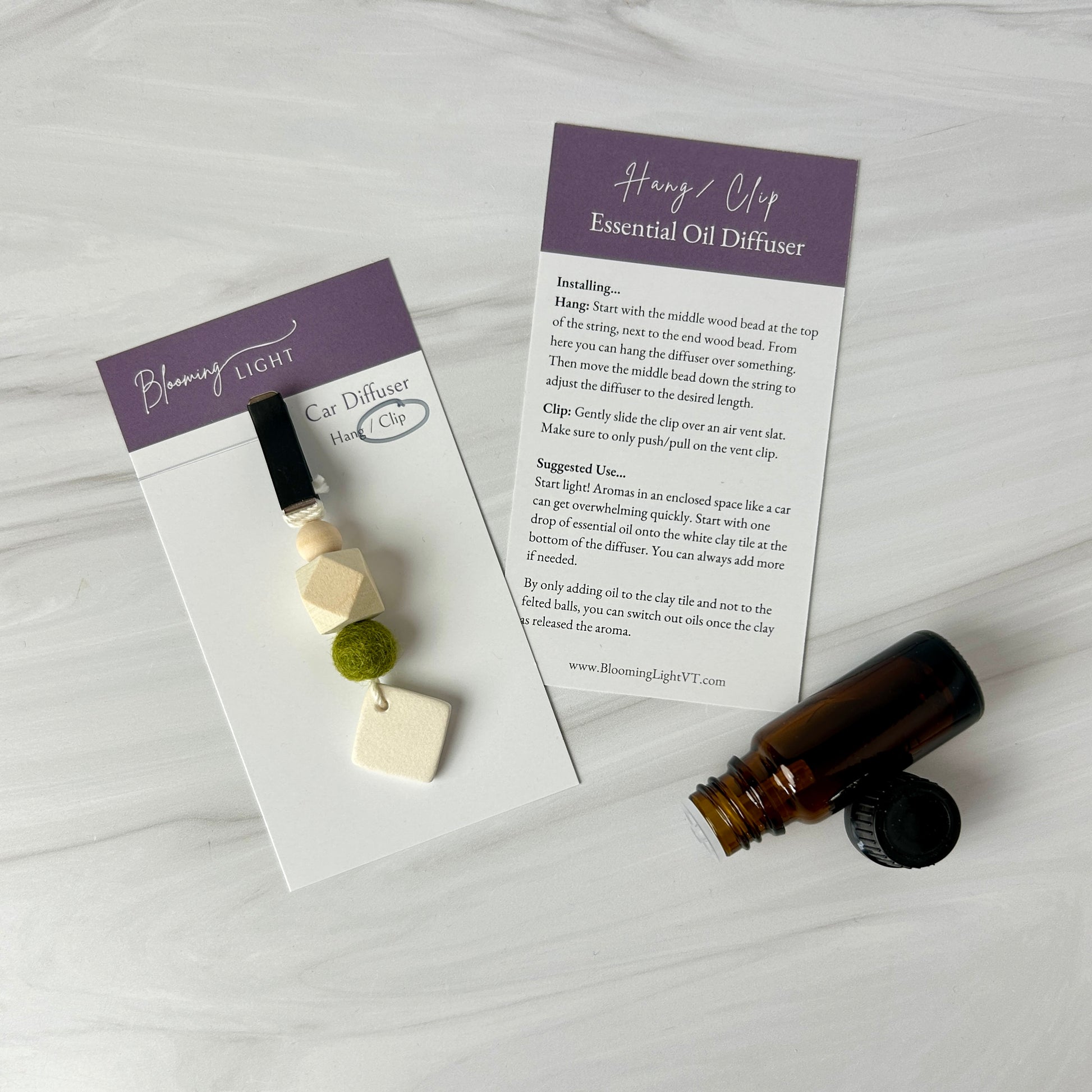 Suggested Use... Start light! Aromas in a small, enclosed space like a car can get overwhelming quickly. Start with one drop of essential oil onto the white or terra-cotta clay stone. You can always add more if needed. You can switch out oils once the clay as released the aroma.